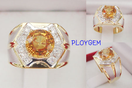 แหวนผู้ชาย แหวนทองคำแท้ ประดับด้วยพลอยบุษราคัมจันท์ 3.5 กะรัต,เพชร 8 เม็ดน้ำหนักรวม 0.16 กะรัต