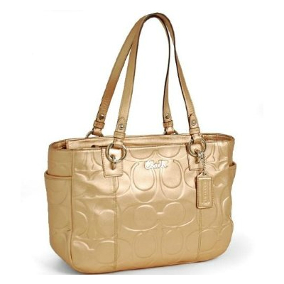 Coach Metallic Gold Signature Embossed Large Leather Bag Purse Tote