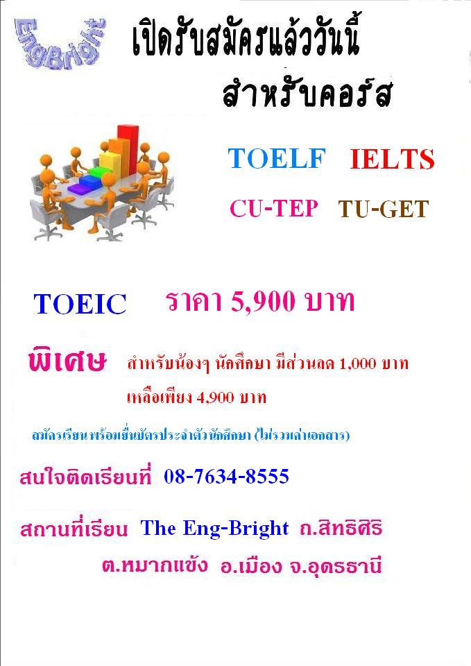 ภาษาอังกฤษ อุดรธานี TOEIC IELTS TOEFL CU-TEP TU-GET
