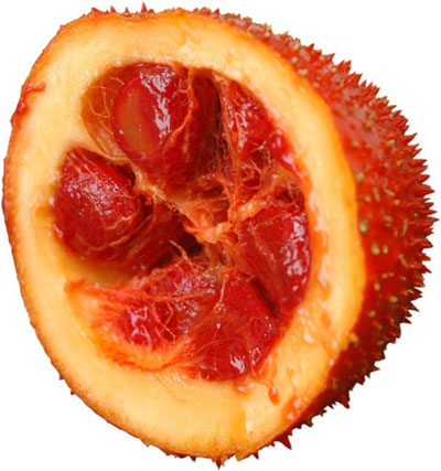 เยื่อเมล็ดของฟักข้าวมีปริมาณเบตาแคโรทีนมาก กว่าแครอต 20 เท่า และ มีไลโคพีนมากกว่ามะเขือเทศ 70 เท่า มีวิตามินซี มากกว่าส้ม 40 เท่า มีzeaxanthin กว่าข้าวโพด 40 เท่าและมีกรดไขมันขนาดยาวประมาณร้อยละ 19 ของมวล การกินบีตาแคโรทีนจากฟักข้าวพบว่าดูดซึมในร่างกายได้ดีเพราะละลายได้ในกรดไขมันดังกล่าว