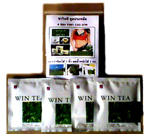 เพียงคุณดื่ม ชา วิน ที 1 ซอง คุณจะสามารถเห็นผลที่น่าประทับใจทันที ดื่มครบ 4 ซอง(4 วัน) เห็นผลชัดเจน ด้วยผลิตภัณฑ์ ชาวิน ที(WIN TEA) ซึ่งผลิตจากสมุนไพรชั้ยยอดคือ ชาเขียว(Green Tea)ญี่ปุ่น , บัวหลวง ,พลับจีน และโสมไซบีเรีย