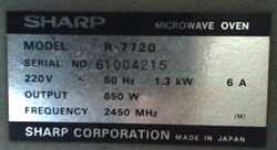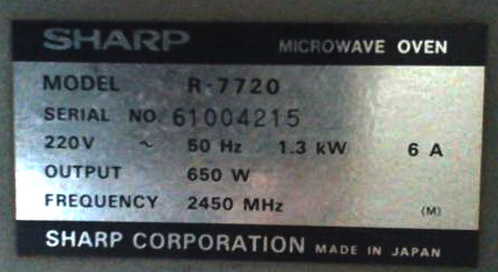 | ยี่ห้อ: | Sharp | รุ่น: | R-7720 | ||