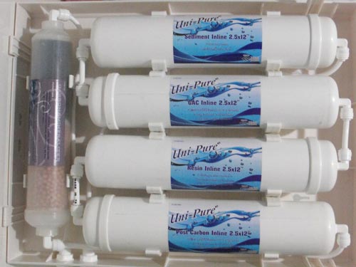 จำหน่ายเครื่องกรองน้ำ Unipure Blue 5 ขั้นตอน ออกแบบสวยหรูเพื่อการแขวนผนัง โดยมีคุณสมบัติเศษในการปรับรสชาติ ยับยั้งแบคทีเรีย เพิ่มแร่ธาตุที่เป็นประโยชน์ต่อร่างกายด้วยไส้กรอง Carbon & Mineralizer ซึ่งคุณสมบัติและขั้นตอนการกรองเป็นดังนี้ ขั้นตอนที่ 1 Sediment Inline 12" กรองสิ่งสกปรกตะกอนขนาดเล็กที่เป็นสารแขวนลอยในน้ำ ขั้นตอนที่ 2 Gac Inline 12" กำจัดสารเคมี กลิ่น สี รส ที่ไม่พึงประสงค์ เช่น คลอรีน ขั้นตอนที่ 3 Resin Inline 12" กำจัดหินปูน ลดความกระด้างของน้ำ ทำให้น้ำมีรสชาตินุ่มนวลชวนดื่ม ขั้นตอนที่ 4 Post Carbon Inline 12" กรองตะกอน ปรับรสชาติ กำจัดสี กลิ่นอีกครั้งก่อนนำไปบริโภค ขั้นตอนที่ 5 Carbon & Mineralizer ปรับรสชาติ กำจัดกลิ่น ยับยั้งแบคทีเรีย เพิ่มแร่ธาตุที่เป็นประโยชน์ต่อร่างกาย ทั้งชุดพร้อมอุปกรณ์ติดตั้งขายในราคา 1,400 บาท ไม่รวมค่าติดตั้งและจัดส่ง(อุปกรณ์ติดตั้ง 1. ชุดก็อกน้ำ 3 ทาง 2. ก็อกน้ำดี 3.ขายึดก็อกน้ำดี 4.สายยาง 2 เมตร 5.พุ๊กพร้อมน็อตยึดเครื่อง) ***พิเศษ Upgrade เป็นระบบไส้กรอง Ultrafitration Membrane(UF) เปลี่ยนไส้กรอง Inline Post Carbon 12" เป็น UF ในราคา 1,800 บาท