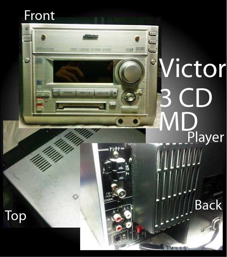 เครื่องเล่นคอมโป Victor เล่น CD 3 แผ่น พร้อมเครื่องเล่น MD สามารถบันทึกแผ่น MD ได้แบบ Hispeed สามารถเล่นแผ่น MD ที่บันทึกมาได้ทั้งแบบ SP และ LP ขายพร้อมลำโพง Onkyo D - V7 เสียงนุ่มไพรเราะ