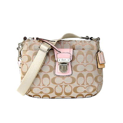 COACH Poppy Cream Light Khaki & Pink Metallic Signature C Crossbody Swingpack