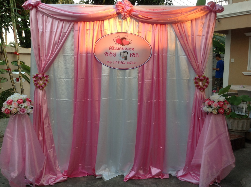 1. Backdropตกแต่งด้วยผ้า พร้อมดอกไม้ประดิษฐ์