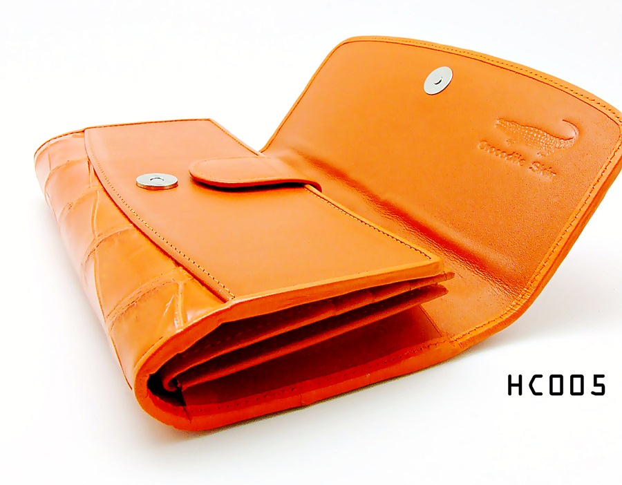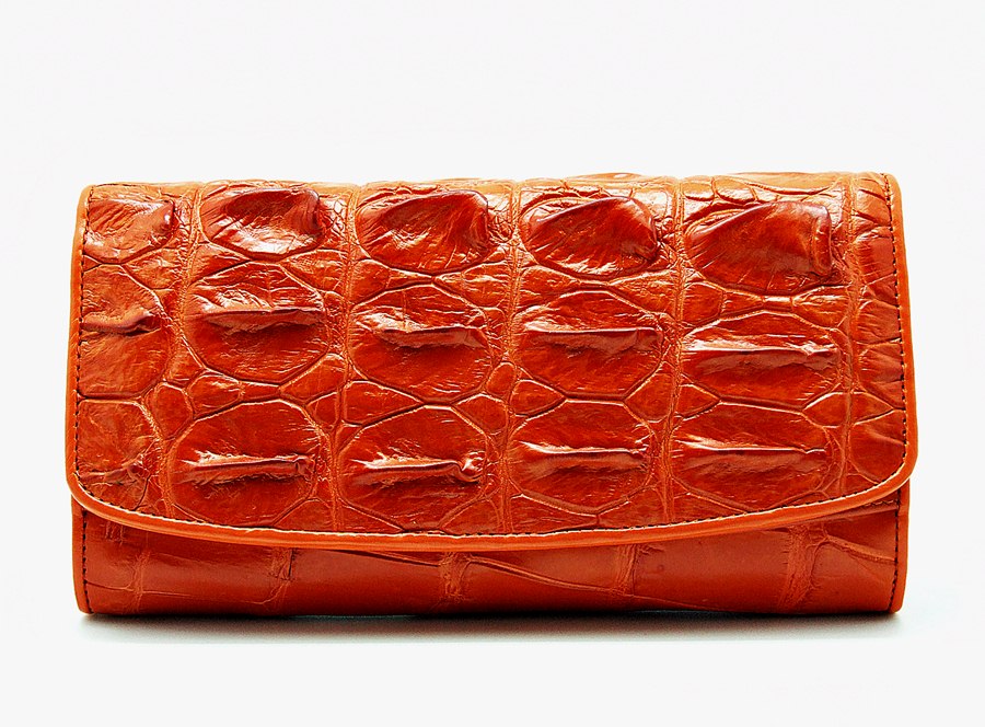 กระเป๋าสตางค์สุภาพสตรี ขนาด 3 พับ หนังจระเข้แท้ การฟอก และย้อมสี ผ่านกรรมวิธีที่มีคุณภาพ จึงทำให้เกิดความรู้สึกถึงความนุ่มมือเมื่อสัมผัส การวางตำแหน่งลายหนัง ได้สวยงามลงตัว