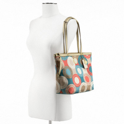 COACH SIGNATURE STRIPE SNAPHEAD PRINT TOTE