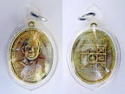 เหรียญทำน้ำมนต์ องค์หลวงพ่อพระราชพรหมยาน(หลวงพ่อฤาษีลิงดำ) วัดท่าซุง จ.อุทัยธานี เนื้อกะไหล่ทอง พ.ศ 2532 (พิมพ์คอนูน)