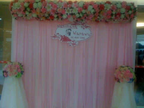**ซุ้มฉากหลัง ตกแต่งด้วยดอกไม้ประดิษฐ์ เพิ่มเงิน 1,000 บาท