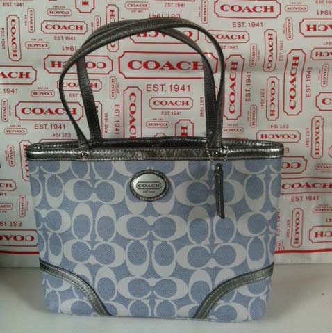 COACH HERITAGE SIGNATURE SILVER DENIM TOTE