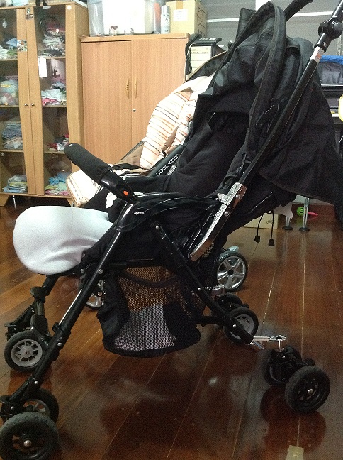จากนั้นลองไปดูรถเข็นเด็กมือสอง aprica จากใน web ค่ะ เอามาจากญี่ปุ่น (ซื้อมา 4000 บาทค่ะ เมื่อประมาณเดือนมิถุนายน หรือ กรกฎาคม 55 จำไม่ได้ค่ะ) สภาพมีรอยขีดข่วนบ้าง ตรง hand แต่สภาพผ้าที่บังแดด และ สภาพที่นั่ง รวมถึงสภาพทั่วไปยังโอเคเลยค่ะ มีผ้าสีซีดบ้างตรงที่กั้นด้านหน้า แต่ว่าสีที่ซีดคนอื่นจะมองไม่ค่อยเห็น เพราะอยู่ด้านหลังค่ะ