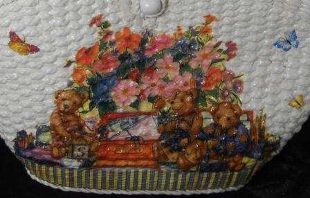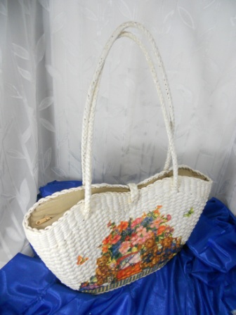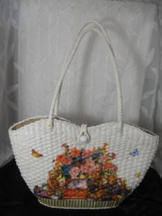 กระเป๋าสานลายหมีน่ารัก กระเป๋าสานจากผักตบชวา ทำลายหมี และดอกไม้น่ารักมาก