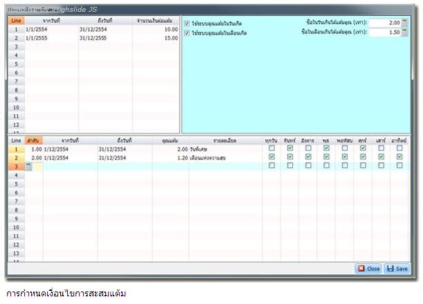 * มีระบบสะสมแต้ม (พิมพ์ยอดสะสมท้ายบิลได้)