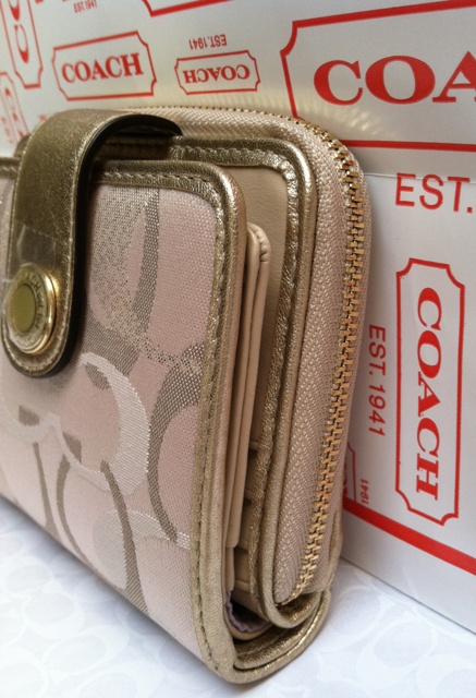 สวยม๊ากๆๆ จ้า. COACH SIGNATURE STRIPE OPTIC METALLIC SIGNATURE SLIM MEDIUM