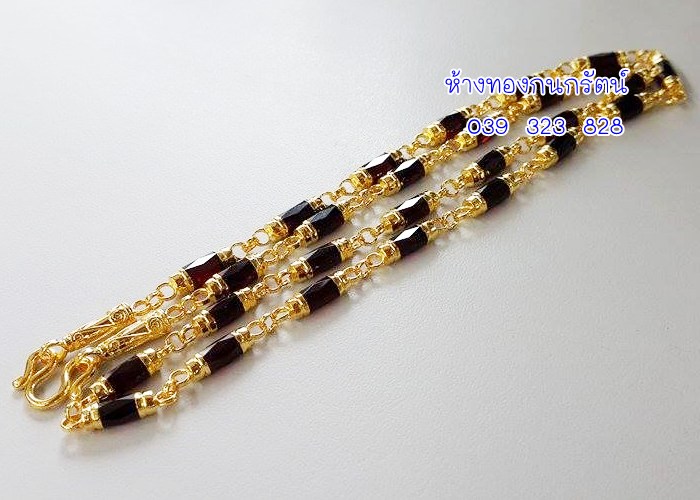 สร้อยคอโกเมนแท่ง พลอย 11 มิล 30 เม็ด น้ำหนักทอง 23.1 กรัม