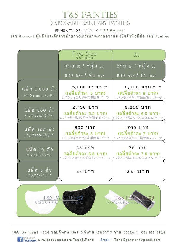 T&S Garment ผู้ผลิตและจัดจำหน่ายกางเกงในอนามัยชนิดใช้แล้วทิ้ง ยี่ห้อ T&S Panties