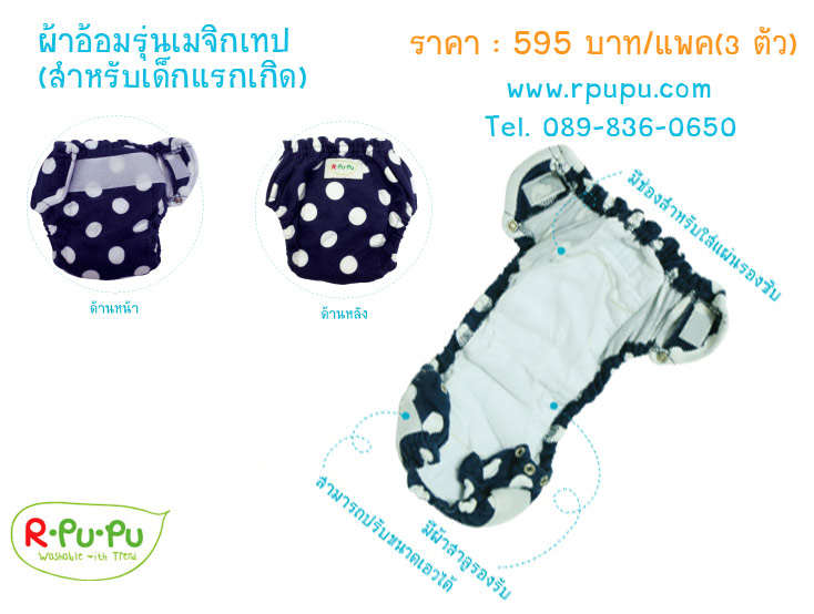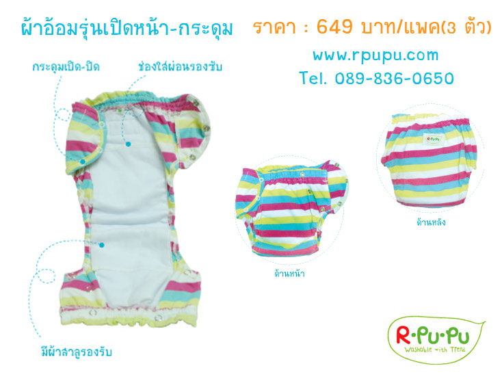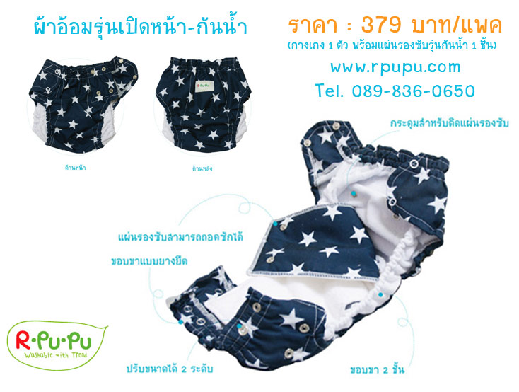 | ยี่ห้อ: | R PUPU | รุ่น: | ผ้าอ้อมเปิดหน้า-กันน้ำ |