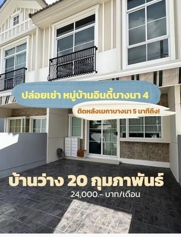 ให้เช่าและขาย ทาวน์โฮม 2ชั้น อินดี้บางนา 4 (เฟส2) ติดเมกาบางนา
