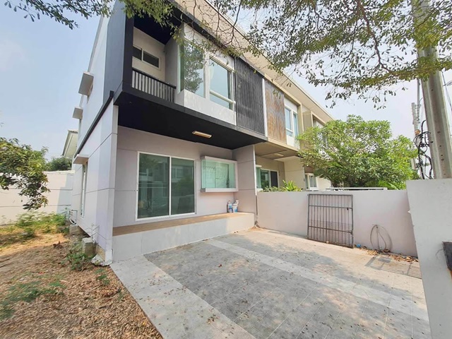 Sarasas School Pracha Uthit90 200 m. 2-storey townhouse last corner Land and House newly renovated 2bed 3bath good location on the main road 35 sq.w.250 sq.w. shady atmosphere quiet swimming pool view King Mongkut's University of Technology Thonburi 5.7 km. for rent 14,999 B-M for sale 2,499,999 baht BTS Chang Erawan 9.4 km. convenient transportation