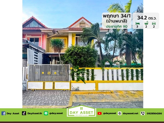 ขายทาวน์เฮาส์ 2 ชั้น หมู่บ้าน พฤกษา 34/1 บ้านพนาลี ประชาอุทิศ 90 หลังมุม เนื้อที่ 34.2 ตร.ว. ขายเพียง 2,250,000 ล้านบาท