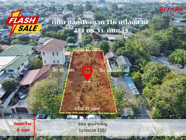 ที่ดิน บางแวก 116 ถมแล้ว 214 ตร.ว. ใกล้รถไฟฟ้าหลักสอง ทำเลดี เหมาะสร้างบ้าน ใกล้คลองลัดมะยม ซอยพูนบำเพ็ญ