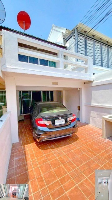 ชั้นล่าง: ห้องครัว ส่วนทำอาหาร-ตั้งโต๊ะกินข้าว ห้องรับแขก ห้องน้ำ ด้านหน้าภายในรั้วจอดรถได้ 1 คัน