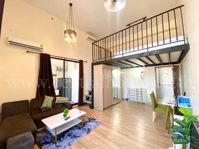 - 1 ห้องนอน แบบ Duplex, 1 ห้องน้ำ, 1 ห้องนั่งเล่น, 1 ห้องครัว, 1 ที่จอดรถ
