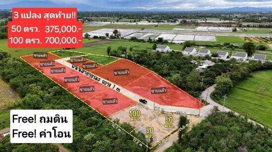 - แปลงพื้นที่ 50 ตรว. มี 2 แปลง ขายราคาแปลงละ 375,000 บาท ถมดินแล้ว ฟรีค่าโอน