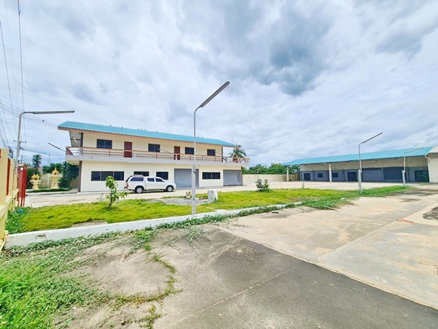 Lotus Suphanburi 3.26 km. PaiKhwang Market 1km. Bang Bua Thong-Suphan Buri parallel road Warehouse for rent spacious 2Rai 1,125sq.m. Two-story office space available 44,999-129,999 B-M. Located on a main road in the city. Accessible via multiple routes including Suphan Buri Ring Road.