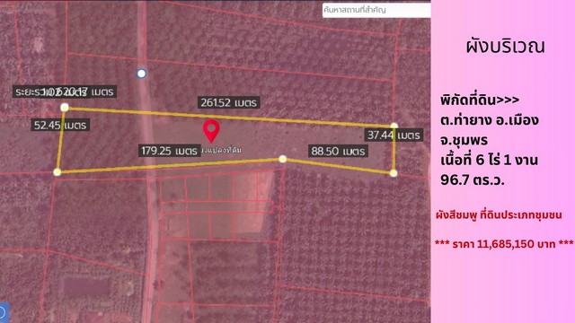 ขายที่ดินเปล่าเหมาะลงทุน จ.ชุมพร - ห่างหาดเพียง 5 นาที เนื้อที่ 6 ไร่ 1 งาน 96.7 ตร.ว.