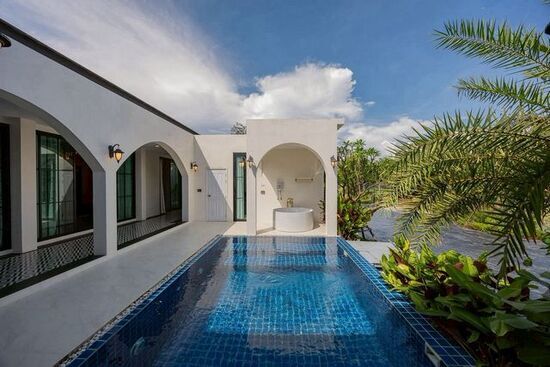พูลวิลล่าติดแม่น้ำ บรรยากาศส่วนตัว รายล้อมด้วยธรรมชาติ และพื้นที่กว้างสำหรับกิจกรรม