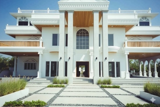รพ.นพรัตนราชธานี คุ้มเกล้า 1.9 กม. นิคมอุตสาหกรรมลาดกระบัง ขายคฤหาสน์ บ้าน 3.5 ชั้น กว้างใหญ่ 280 ตร.วา. 608 ตร.ม.ติดทะเลสาบ 5นอน 5 น้ำ