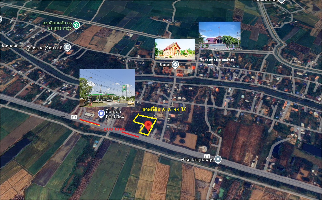 ขายที่ดิน 3-2-44 ไร่ ติดถนนคลองซ้าย ลพบุรี-ชัยนาท ทางหลวงหมายเลข 311 ห่างจาก ตลาดสดเทศลบาลตำบลท่าวุ้ง 2.8 กม. ต.ท่าวุ้ง อ.ท่าวุ้ง จ.ลพบุรี