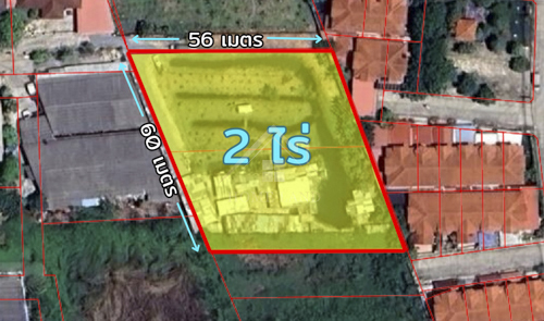 - หน้ากว้าง 60 เมตร ลึก 56 เมตร