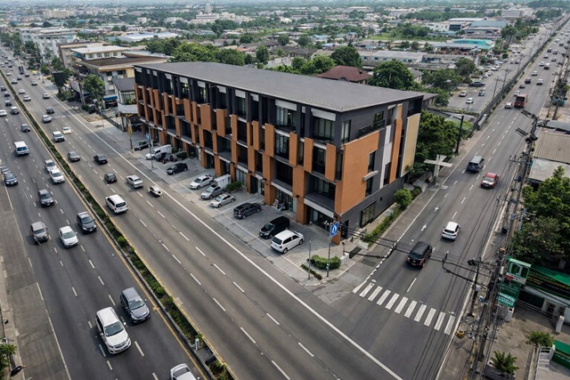อาคารพาณิชย์สูง 3.5 ชั้น ตั้งอยู่ติดถนนใหญ่ มองเห็นชัด