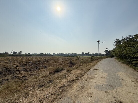 ที่ดินเปล่า ติดถนนลาดยางหน้ากว้าง 89 เมตร ด้านหน้าปลูกข้าว / ด้านหลังมีสวนมะพร้าวน้ำหอม