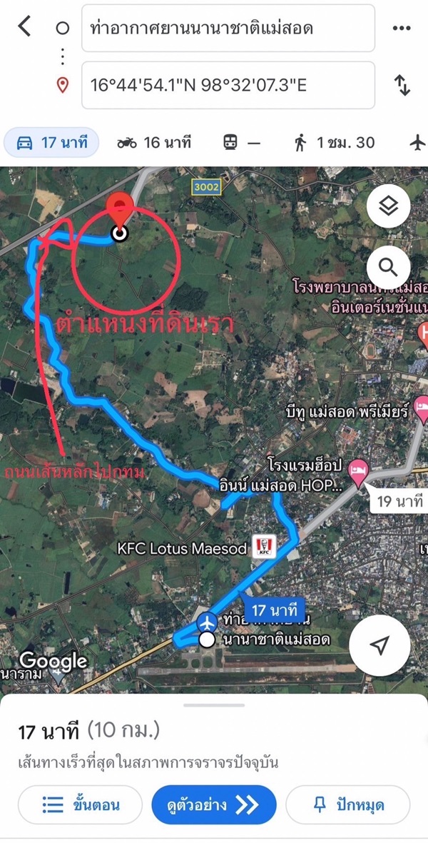 - ห่างจากโลตัสแม่สอด 8 กิโลเมตร