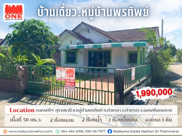 บ้านเดี่ยว หมู่บ้านพรทิพย์ เพียง 4 นาที ถึง มหาวิทยาลัยวลัยลักษณ์