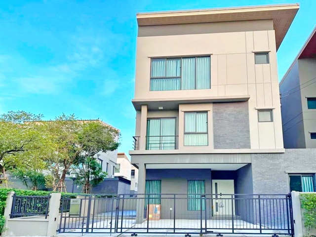Khubon 3-story house 4bed Fashion Island 1.8km. MRT Ramintra83 900m. 4bath near usable area 31sq.wa. 370sq.m. rent 63,999 B-M corner house next to garden luxury villa style fully furnished suitable for living prime location in Ramintra tranquil and private atmosphere connected to Chalong Ratch Expressway and Kanchanaphisek Expressway