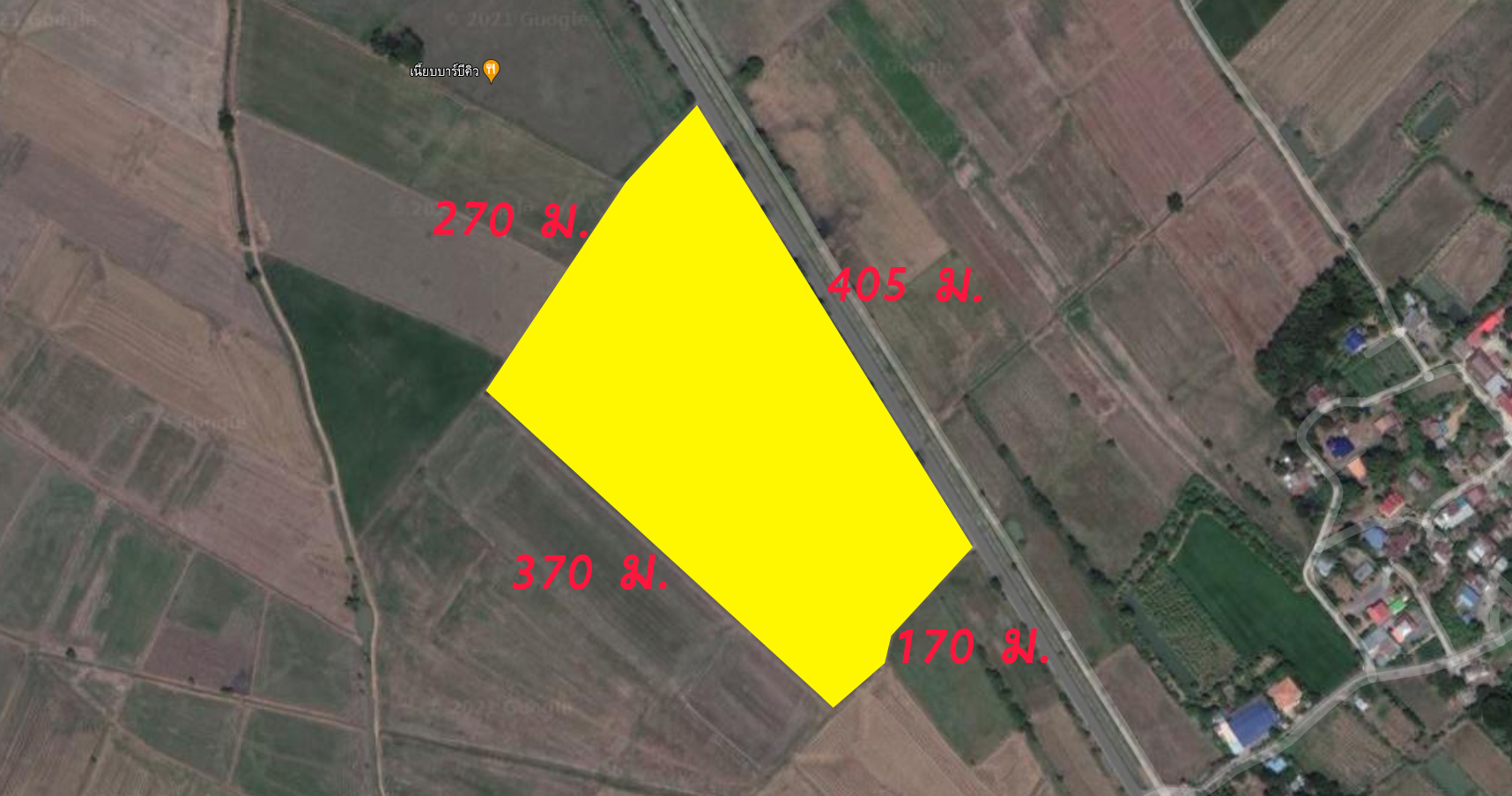 - หน้ากว้างติดถนน 405 เมตร ลึก 270 เมตร