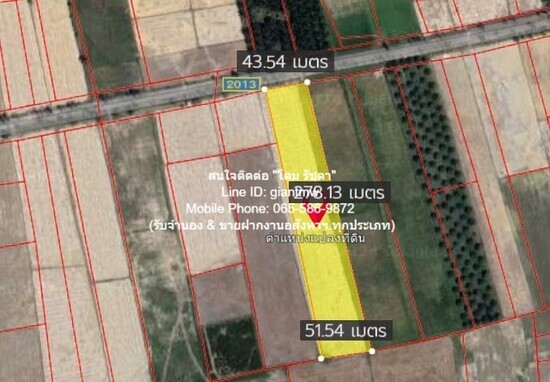 รายละเอียดทรัพย์ที่ขาย: ที่ดินติดถนนทางหลวงหมายเลข 2013 เนื้อที่ 7-2-10 ไร่ (3,010 ตร.ว.)