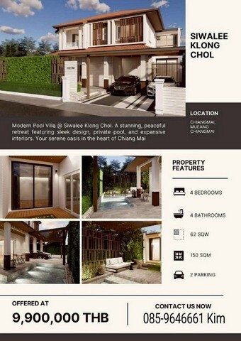 พูลวิลล่าสุดหรู พร้อมอยู่ บรรยากาศสงบ เดินทางเข้าเมืองสะดวก แม่เหียะ